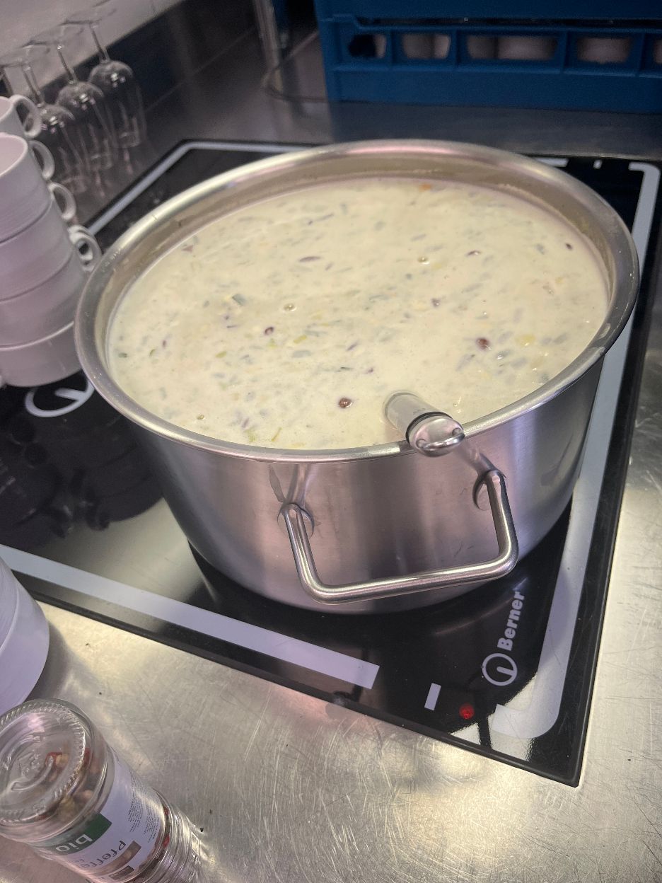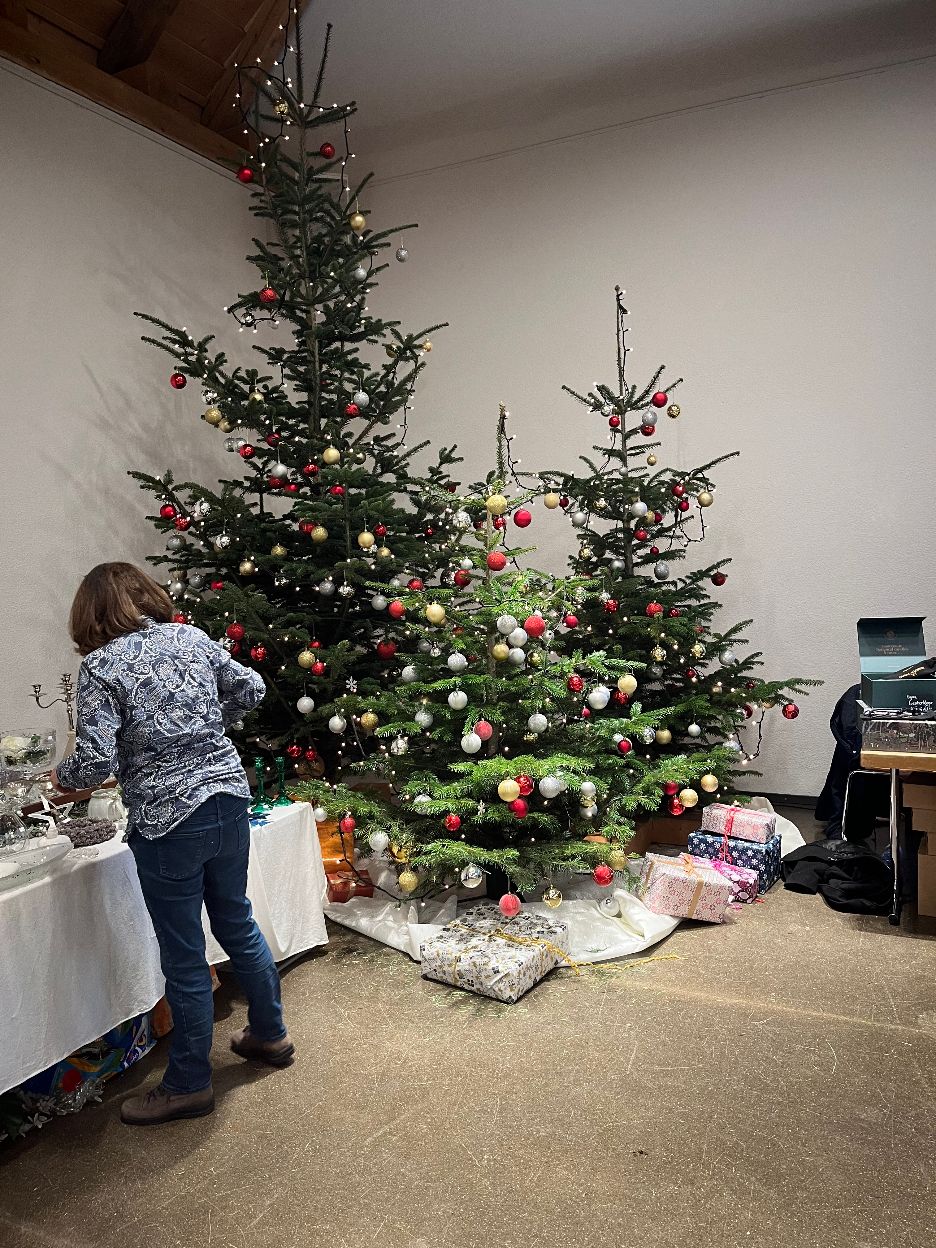 Es ist eingerichtet. Die Gäste können kommen. Eine feine Bündner Gerstensuppe wartet auf unsere Gäste. Natürlich braucht es auch fleissige Helfer. Schon sehr schnell wurde das Kafi besetzt. Der Tannenbaum leuchtet und Weihnachten kann kommen.
